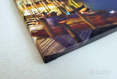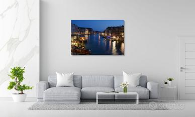 Quadro moderno stampa su tela di Venezia con vista sul Canal Grande da Ponte di Rialto, ambientazione serale - cm 45 x 30. NUOVO MAI USATO.