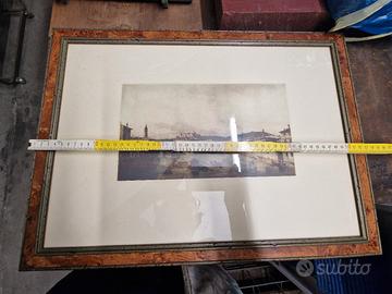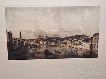 Quadro con stampa rappresentante fiume Adige e Verona, misure nelle foto, cornice in radica.