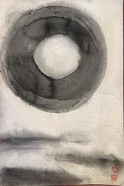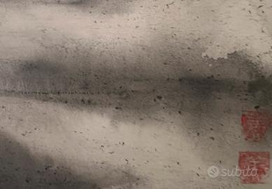 Quadro dipinto a mano stile giapponese colori acrilici timbro in ceralacca incorniciato 50x70