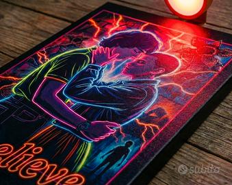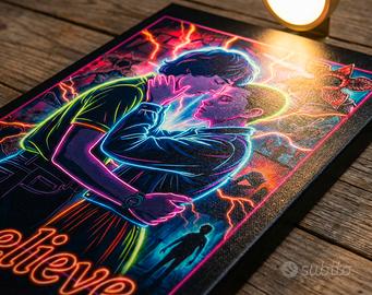 • Soggetto: Una reinterpretazione artistica carica di emozione, con la scritta iconica "| believe" in stile neon