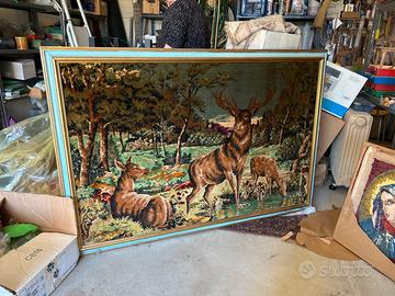 quadro vintage con animali molto grande 160cm x 110cm, ricamato a mano