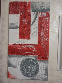 Vendo quadro su legno con applicazioni in swaroski,e quadro su tela disegno astratto rosso e argento con applicazione in legno