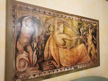 Pannello "stile affresco" su legno. . Misure 160x 90 cm circa. Ottimo stato. Ideale in ambienti caldi e accoglienti, anche sopra la testiera del letto. Oppure, perché no, in un locale commerciale.