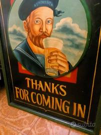 Quadro da birreria/pub dipinto a mano su tavola lignea. Altezza cm 102 x larghezza cm 60 x profondità cm 3. Condizioni ottime pari al nuovo.