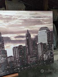 quadro raffigurante new York con tempere acriliche e parti brillantinate. Con anche la possibilità di appenderlo come anta per coprire contatori ecc. misura 139 x 70cm.