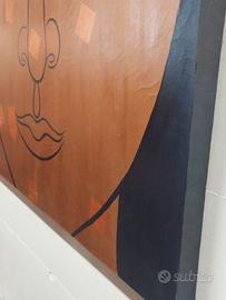 Quadro in nero e oro su tela montato su telaio in legno. 121 cmx160cm sono le misure. Disponibile consegna