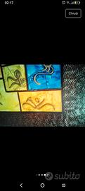 Quadro dipinto su tela e provvisto di telaio di legno. Si può esporre sia verticalmente che orizzontalmente (ci sono due ganci e si può comunque appendere dal telaio). Misure: 47x124cm Quadro creato dall'artista Frank con motivi etnici e cornice inclusa a rilievo con una bella texture. Ritiro in via Conte Verde, Torino. Non spedisco per misure fuori scala. *** NON rispondo a richieste di sconto. Grazie per leggere tutte le mie condizioni prima di contattarmi.
