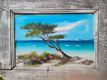 Dipinto su telaio finestra 165x50 due ganci per appenderlo
