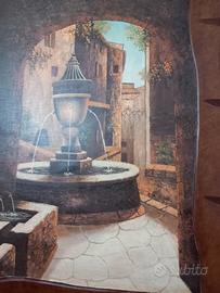 bellissimo quadro in legno con immagine di una fontana, misura 61cm di larghezza per 80 cm di altezza