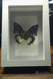 Bellissimo quadro con una farfalla tassidermizzata. - Inserita su un supporto di carta bianco. - Ali con sfumature blu e multicolore. H 12 cm L 17 cm P 4.5 cm