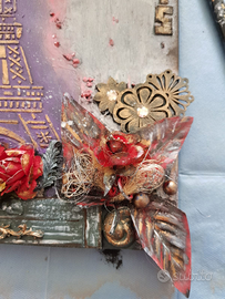 tela quadro con tecnica mixer media unico personalizzato regalo amore Parigi quadro casa pareti cucina entrata bagno camera fiori colore