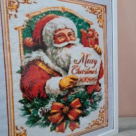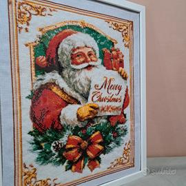 quadro tela incorniciata babbo natale misura 40 x 50 tela ricamata a punto croce.