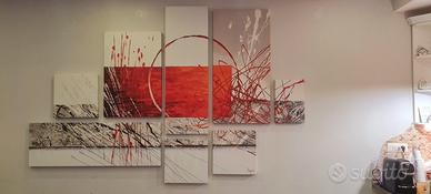 quadro astratto composto da 8 pezzi così come sono montati le misura é lunghezza 2.70 cm e altezza 1.70 cm colore bianco nero grigio e rosso .comprato 2 anno fa