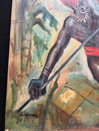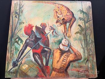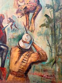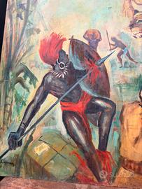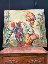 grande quadro soggetto esotico olio su tavola primi 900 o forse anche fine 800 firmato grande impatto visivo colori molto accesi