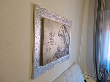 vendita quadro in ottimissime condizioni in legno con figura rappresentativa disegnata in tela