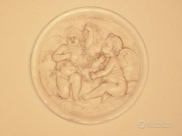 Piatto tondo diametro cm.70 da parete in ceramica porcellanata raffigurante due angeli.