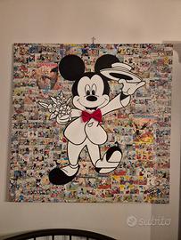 interamente lavorato a mano su tela 100x100, arricchito da fumetti vintage, accuratamenti incollati.