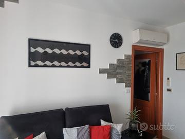 quadro 104x43 rappresenta le onde della vita ( salite e discese ) pailettes nere e argento in tessuto acquistato in Turchia. Cornice in legno nero.