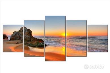 Vendo quadro tramonto al mare, composto da 5 pezzi come si vede in foto, per una misura totale di 225x100.