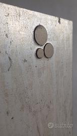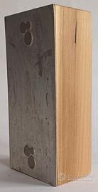 “Quadro realizzato con cliché di stampa originale, applicato manualmente su solida base in legno di rovere. L’abbinamento tra l’elemento tecnico tipografico di ZINCO e la naturalezza del legno crea un’opera dal forte carattere materico, unica per texture e contrasti. Oggetto decorativo raffinato, ideale per ambienti moderni e spazi dal gusto industriale o contemporaneo.”