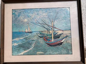 Quadro "Barche a Saintes-Maries" di Vincent Van Gogh. Cornice marrone in legno delle dimensioni di cm.69x57.