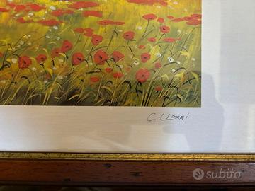 Quadro con stampa e cornice C. Lipari, titolo "Campagna con papaveri".