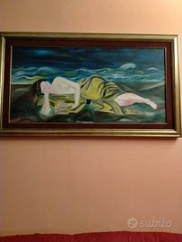 Bellissimo quadro con cornice dorata e bordo in velluto bordeaux. Tenuto molto bene.
