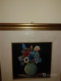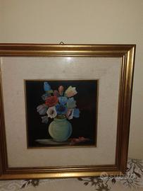 Dipinto raffigurante un vaso di fiori colorati, incorniciato da una cornice in legno dorato. - Tela dipinta a mano. - Cornice in legno con finitura dorata. - Motivo floreale vivace. Misure 37x37. Visionabile in qualsiasi momento e pronto ad inviare ulteriori foto su richiesta. Prezzo Euro 15,00. Consegna diretta in zona Cremona oppure pagamento e spedizione tramite Subito.it