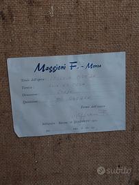 Vendo affascinante dipinto originale dell'artista lombarda Ferma Maggioni, nota per le sue vedute urbane dal sapore nostalgico. L’opera, intitolata “Vecchia Monza”, è un olio su tela di 50x70 cm, incorniciata in legno con finitura dorata e bordo interno chiaro, pronta per essere esposta.