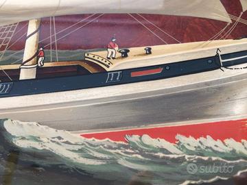 LOTHAIR Quadro cm 95 x 60 molto ben tenuto, dipinto da Rita Simonetto per Woodart, made in Italy, garanzia sul retro, tavola in ottime condizioni . Lothair vecchia stampa dell'800 riprodotta serigraficamente e riprodotta su impiallacciatura di radica tassellata. Riproduce un bel veliero costruita sul tamigi .