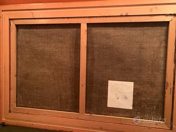 Dipinto olio invecchiato su tela con cornice dorata, soggetto veliero (anno 1991) dim 70x113 cm (88x130 cm con cornice)