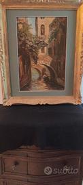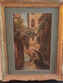 quadro dipinto ad olio su cartoncino ,scorcio di Venezia.