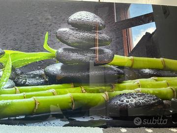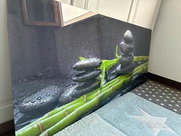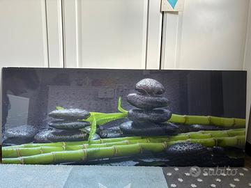 Elegante quadro su vetro acquiststo da Le Roy merlin. Raffigurante sassi e bamboo- adatto per abbellire soggiorno o per bagni o per ambienti relax / spa.