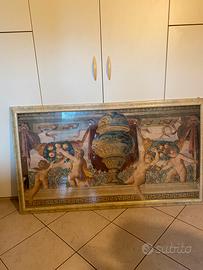 Si tratta di una stampa con putti, con vetro e cornice in legno marcata Arquati. Misure: altezza cm. 84 larghezza cm. 148.