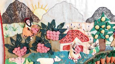 Le Arpillera sono fatte in diversi paesi sudamericani; paesaggi, mercati, vita del villaggio, scene naturali e altri soggetti sono raffigurati in collage che combinano patchwork, applicazione e ricami.