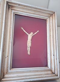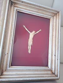 quadro vintage cristo in croce materiale di pregio misura 13x12 cornice argento anticato fondo Borgogna misura 33x24x9 cm