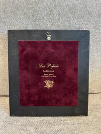 Retro: Completamente rivestito in raffinato velluto bordeaux con incisioni in oro che riportano i dati dell'opera e dell'artista.
