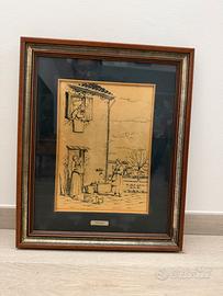 La cornice è in legno con finitura doppia (legno + bordo interno metallizzato), elegante e in buone condizioni. Perfetto per arredare soggiorno, ingresso, cucina o ambienti in stile rustico/vintage.