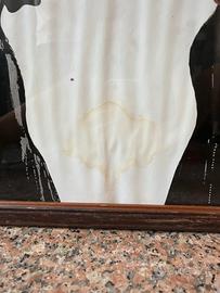 Il quadro è incorniciato in legno scuro (con segni di usura che ne accentuano il fascino vintage) e protetto da vetro.