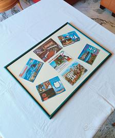 Quadro vintage contenente una composizione di 7 cartoline dedicate a Sanremo e Bordighera, località iconiche della Riviera Ligure. Le cartoline raffigurano scorci tipici, il Teatro Ariston, panorami turistici e monumenti.