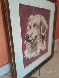 Quadro Vintage Mezzo Punto Cane Golden Retriever