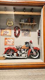 Vendo quadro vintage in legno con teca in vetro e sfondo in velcro stile motofficina americana con alcuni tasselli il legno scollati da sistemare da chi se ne intende per il resto è perfetta.