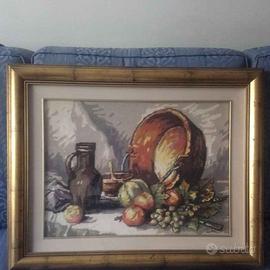 Quadro vintage punto croce e ricamo con cornice