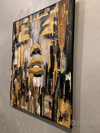 Bellissimo dipinto a mano con colori acrilici oro e nero su tela 30x40cm