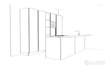 Progetta e ordina la tua cucina nuova scegliendo tra una vasta gamma di colori e finiture personalizzabili. Tutte le nostre cucine sono da realizzare su PROGETTAZIONE. Vendita direttada un produttore italiano. Visita in fabbricadisponibile per vedere il processo di produzione della tua cucina. Caratteristiche principali: Cucina lineare completacon maniglia a gola, composta da: • 1 colonna frigo da 75 cm • 1 colonna forno da 60 cm • 1 colonna a giorno da 30 cm • 2 colonne da 60 cm • 1 base lavello da 90 cm • 1 base lavastoviglie da 60 cm • 1 base piano cottura con 2 cassetti e cestone da 90 cm • 1 base da 30 cm • Tavolo snack a sbalzo su penisola Promozioni: • Offerte su materiali: Gres, Quarzo, HPL, Cosmolite. • Elettrodomestici a scelta. Assistenza e Consegna: • Assistenza diretta con la fabbrica per la sostituzione di elementi difettosi. • Consegna gratuita in tutta Italia presso il deposito del cliente. MONTAGGIO DISPONIBILE SU RICHIESTA, da verificare la copertura. Componenti e Accessori: • Guide e cerniere rallentate di alta qualità (Salice). • Possibilità di aggiungere ulteriori componenti per completare anche la zona living. • Proposta di pacchetto elettrodomesticidisponibile (non obbligatorio). • Personalizzabile in colori, finiture (Gres, Laminato, Legno, Impiallacciato, Laccato, Cannettato, Hpl, Fenix, Laccato, Inox, Vetro e Specchio ) e dimensioni. • Top: ✔ Quarzo | ✔ HPL | ✔ Fenix | ✔ Cosmolit | ✔ Gres | ✔ Marmo | ✔ Inox | ✔ Laminato | ✔ Legno.
