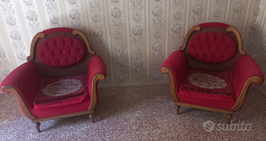 Cedo quasi in regalo (al prezzo indicato nell'annuncio si prendono tutti e 3 i pezzi) 3 poltrone con struttura in legno, 2 di colore rosso ed una color arancio (il cuscino della poltrona arancio deve essere rifatto). Disponibili tra i miei annunci altri mobili ed elettrodomestici quasi gratis.