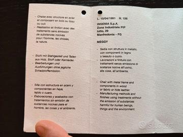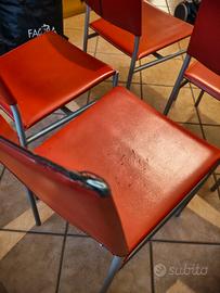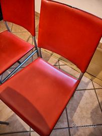 Numero quattro sedie marca INGENIA modello MEGGY usate con alcuni segni di usura. Telaio metallico molto resistente, rivestimento in pelle/finta pelle di colore rosso. Possibilità di consegna tra Bologna e Ravenna.
