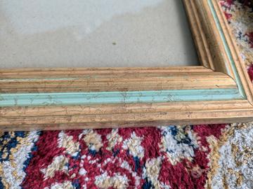 Bellissime cornici in legno dorate, dimensioni medio/grandi conterrebbero una pergamena di laurea. Fatte da un corniciaio, una ha una colorazione in verde Tiffany, un' altra ha una banda bordeaux. Altre due sono tutte dorate.