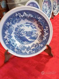 Quattro piatti fondi vintage porcellana inglese, marchio Johnson Bros England. La decorazione è floreale sul bordo e paesaggio giapponese al centro. Vendo a euro 100. Prezzo leggermente trattabile. Non spedisco. Ritiro a carico dell'acquirente a Siena e dintorni.