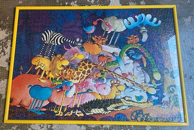 Vendo causa non utilizzo, quattro quadri realizzati con puzzle, soggetti divertenti, adatti a cameretta bambini/ragazzi. Cornici in legno laccate color giallo; tenuti benissimo.